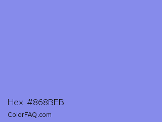 Hex #868beb Color is a light blue color and the nearest color is Chetwode Blue #8581d9. Hex code #868beb and RGB value is rgb(134,139,235). In RGB color space, this color is composed of 53% red, 55% green, 92% blue, In CMYK color space, this color is composed of 43% cyan, 41% magenta, 0% yellow , 8% black , In HSL color space, this color has a hue angle of 237° , 72% saturation and 72% lightness.