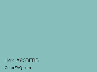 Hex #86bebb Color is a light cyan color and the nearest color is Neptune #7cb7bb. Hex code #86bebb and RGB value is rgb(134,190,187). In RGB color space, this color is composed of 53% red, 75% green, 73% blue, In CMYK color space, this color is composed of 29% cyan, 0% magenta, 2% yellow , 25% black , In HSL color space, this color has a hue angle of 177° , 30% saturation and 64% lightness.
