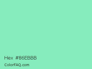 Hex #86ebbb Color is a light green color and the nearest color is Algae Green #93dfb8. Hex code #86ebbb and RGB value is rgb(134,235,187). In RGB color space, this color is composed of 53% red, 92% green, 73% blue, In CMYK color space, this color is composed of 43% cyan, 0% magenta, 20% yellow , 8% black , In HSL color space, this color has a hue angle of 151° , 72% saturation and 72% lightness.