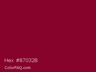 Hex #87032b Color is a dark rose color and the nearest color is Paprika #8d0226. Hex code #87032b and RGB value is rgb(135,3,43). In RGB color space, this color is composed of 53% red, 1% green, 17% blue, In CMYK color space, this color is composed of 0% cyan, 98% magenta, 68% yellow , 47% black , In HSL color space, this color has a hue angle of 342° , 96% saturation and 27% lightness.