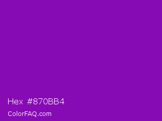 Hex #870bb4 Color is a normal purple color and the nearest color is Violet RYB #8601af. Hex code #870bb4 and RGB value is rgb(135,11,180). In RGB color space, this color is composed of 53% red, 4% green, 71% blue, In CMYK color space, this color is composed of 25% cyan, 94% magenta, 0% yellow , 29% black , In HSL color space, this color has a hue angle of 284° , 88% saturation and 37% lightness.