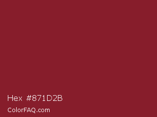 Hex #871d2b Color is a normal red color and the nearest color is Antique Ruby #841b2d. Hex code #871d2b and RGB value is rgb(135,29,43). In RGB color space, this color is composed of 53% red, 11% green, 17% blue, In CMYK color space, this color is composed of 0% cyan, 79% magenta, 68% yellow , 47% black , In HSL color space, this color has a hue angle of 352° , 65% saturation and 32% lightness.