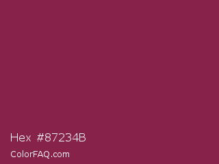 Hex #87234b Color is a normal rose color and the nearest color is Dark Raspberry #872657. Hex code #87234b and RGB value is rgb(135,35,75). In RGB color space, this color is composed of 53% red, 14% green, 29% blue, In CMYK color space, this color is composed of 0% cyan, 74% magenta, 44% yellow , 47% black , In HSL color space, this color has a hue angle of 336° , 59% saturation and 33% lightness.