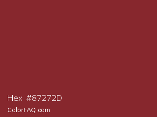 Hex #87272d Color is a normal red color and the nearest color is Antique Ruby #841b2d. Hex code #87272d and RGB value is rgb(135,39,45). In RGB color space, this color is composed of 53% red, 15% green, 18% blue, In CMYK color space, this color is composed of 0% cyan, 71% magenta, 67% yellow , 47% black , In HSL color space, this color has a hue angle of 356° , 55% saturation and 34% lightness.