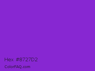 Hex #8727d2 Color is a normal purple color and the nearest color is Blue Violet #8a2be2. Hex code #8727d2 and RGB value is rgb(135,39,210). In RGB color space, this color is composed of 53% red, 15% green, 82% blue, In CMYK color space, this color is composed of 36% cyan, 81% magenta, 0% yellow , 18% black , In HSL color space, this color has a hue angle of 274° , 69% saturation and 49% lightness.