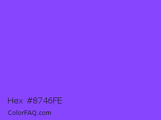 Hex #8746fe Color is a light violet color and the nearest color is Navy Purple #9457eb. Hex code #8746fe and RGB value is rgb(135,70,254). In RGB color space, this color is composed of 53% red, 27% green, 100% blue, In CMYK color space, this color is composed of 47% cyan, 72% magenta, 0% yellow , 0% black , In HSL color space, this color has a hue angle of 261° , 99% saturation and 64% lightness.
