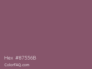 Hex #87556b Color is a normal rose color and the nearest color is Twilight Lavender #8a496b. Hex code #87556b and RGB value is rgb(135,85,107). In RGB color space, this color is composed of 53% red, 33% green, 42% blue, In CMYK color space, this color is composed of 0% cyan, 37% magenta, 21% yellow , 47% black , In HSL color space, this color has a hue angle of 334° , 23% saturation and 43% lightness.