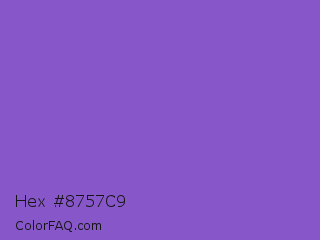 Hex #8757c9 Color is a normal violet color and the nearest color is Fuchsia Blue #7a58c1. Hex code #8757c9 and RGB value is rgb(135,87,201). In RGB color space, this color is composed of 53% red, 34% green, 79% blue, In CMYK color space, this color is composed of 33% cyan, 57% magenta, 0% yellow , 21% black , In HSL color space, this color has a hue angle of 265° , 51% saturation and 56% lightness.