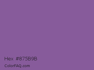 Hex #875b9b Color is a normal purple color and the nearest color is Trendy Pink #8c6495. Hex code #875b9b and RGB value is rgb(135,91,155). In RGB color space, this color is composed of 53% red, 36% green, 61% blue, In CMYK color space, this color is composed of 13% cyan, 41% magenta, 0% yellow , 39% black , In HSL color space, this color has a hue angle of 281° , 26% saturation and 48% lightness.
