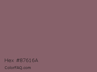 Hex #87616a Color is a normal red color and the nearest color is Falcon #7f626d. Hex code #87616a and RGB value is rgb(135,97,106). In RGB color space, this color is composed of 53% red, 38% green, 42% blue, In CMYK color space, this color is composed of 0% cyan, 28% magenta, 21% yellow , 47% black , In HSL color space, this color has a hue angle of 346° , 16% saturation and 45% lightness.