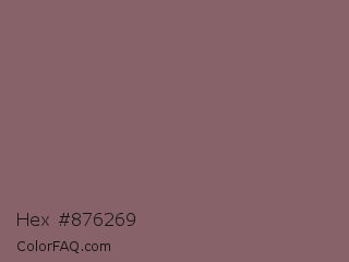 Hex #876269 Color is a normal red color and the nearest color is Falcon #7f626d. Hex code #876269 and RGB value is rgb(135,98,105). In RGB color space, this color is composed of 53% red, 38% green, 41% blue, In CMYK color space, this color is composed of 0% cyan, 27% magenta, 22% yellow , 47% black , In HSL color space, this color has a hue angle of 349° , 16% saturation and 46% lightness.
