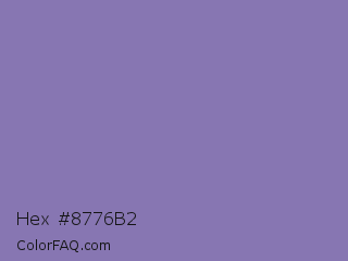 Hex #8776b2 Color is a normal indigo color and the nearest color is Middle Blue Purple #8b72be. Hex code #8776b2 and RGB value is rgb(135,118,178). In RGB color space, this color is composed of 53% red, 46% green, 70% blue, In CMYK color space, this color is composed of 24% cyan, 34% magenta, 0% yellow , 30% black , In HSL color space, this color has a hue angle of 257° , 28% saturation and 58% lightness.
