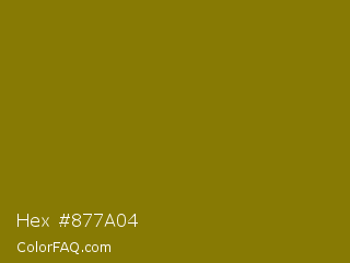 Hex #877a04 Color is a dark yellow color and the nearest color is Olive #808000. Hex code #877a04 and RGB value is rgb(135,122,4). In RGB color space, this color is composed of 53% red, 48% green, 2% blue, In CMYK color space, this color is composed of 0% cyan, 10% magenta, 97% yellow , 47% black , In HSL color space, this color has a hue angle of 54° , 94% saturation and 27% lightness.
