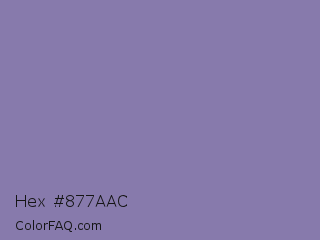 Hex #877aac Color is a normal indigo color and the nearest color is Lavender Purple #967bb6. Hex code #877aac and RGB value is rgb(135,122,172). In RGB color space, this color is composed of 53% red, 48% green, 67% blue, In CMYK color space, this color is composed of 22% cyan, 29% magenta, 0% yellow , 33% black , In HSL color space, this color has a hue angle of 256° , 23% saturation and 58% lightness.