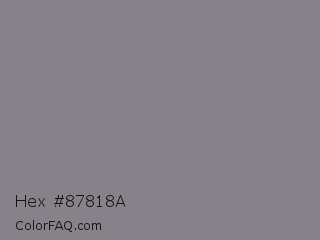 Hex #87818a Color is a normal purple color and the nearest color is Monsoon #8a8389. Hex code #87818a and RGB value is rgb(135,129,138). In RGB color space, this color is composed of 53% red, 51% green, 54% blue, In CMYK color space, this color is composed of 2% cyan, 7% magenta, 0% yellow , 46% black , In HSL color space, this color has a hue angle of 280° , 4% saturation and 52% lightness.