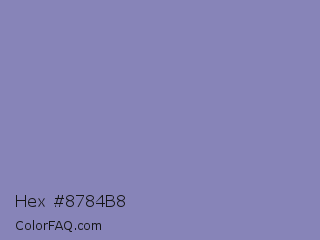 Hex #8784b8 Color is a light indigo color and the nearest color is Wild Blue Yonder #7a89b8. Hex code #8784b8 and RGB value is rgb(135,132,184). In RGB color space, this color is composed of 53% red, 52% green, 72% blue, In CMYK color space, this color is composed of 27% cyan, 28% magenta, 0% yellow , 28% black , In HSL color space, this color has a hue angle of 243° , 27% saturation and 62% lightness.