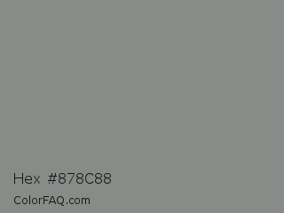 Hex #878c88 Color is a normal green color and the nearest color is Stack #8a8f8a. Hex code #878c88 and RGB value is rgb(135,140,136). In RGB color space, this color is composed of 53% red, 55% green, 53% blue, In CMYK color space, this color is composed of 4% cyan, 0% magenta, 3% yellow , 45% black , In HSL color space, this color has a hue angle of 132° , 2% saturation and 54% lightness.