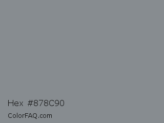 Hex #878c90 Color is a normal blue color and the nearest color is Oslo Gray #878d91. Hex code #878c90 and RGB value is rgb(135,140,144). In RGB color space, this color is composed of 53% red, 55% green, 56% blue, In CMYK color space, this color is composed of 6% cyan, 3% magenta, 0% yellow , 44% black , In HSL color space, this color has a hue angle of 207° , 4% saturation and 55% lightness.