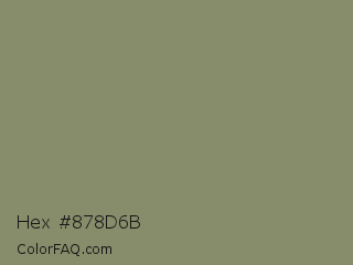 Hex #878d6b Color is a normal lime color and the nearest color is Avocado Pulp #888d65. Hex code #878d6b and RGB value is rgb(135,141,107). In RGB color space, this color is composed of 53% red, 55% green, 42% blue, In CMYK color space, this color is composed of 4% cyan, 0% magenta, 24% yellow , 45% black , In HSL color space, this color has a hue angle of 71° , 14% saturation and 49% lightness.
