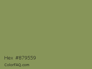 Hex #879559 Color is a normal lime color and the nearest color is Moss Green #8a9a5b. Hex code #879559 and RGB value is rgb(135,149,89). In RGB color space, this color is composed of 53% red, 58% green, 35% blue, In CMYK color space, this color is composed of 9% cyan, 0% magenta, 40% yellow , 42% black , In HSL color space, this color has a hue angle of 74° , 25% saturation and 47% lightness.