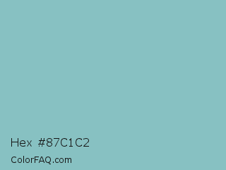 Hex #87c1c2 Color is a light cyan color and the nearest color is Half Baked #85c4cc. Hex code #87c1c2 and RGB value is rgb(135,193,194). In RGB color space, this color is composed of 53% red, 76% green, 76% blue, In CMYK color space, this color is composed of 30% cyan, 1% magenta, 0% yellow , 24% black , In HSL color space, this color has a hue angle of 181° , 33% saturation and 65% lightness.