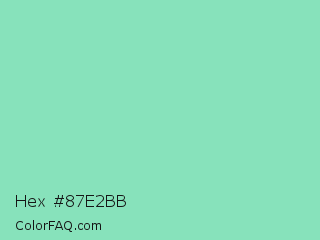 Hex #87e2bb Color is a light green color and the nearest color is Pearl Aqua #88d8c0. Hex code #87e2bb and RGB value is rgb(135,226,187). In RGB color space, this color is composed of 53% red, 89% green, 73% blue, In CMYK color space, this color is composed of 40% cyan, 0% magenta, 17% yellow , 11% black , In HSL color space, this color has a hue angle of 154° , 61% saturation and 71% lightness.