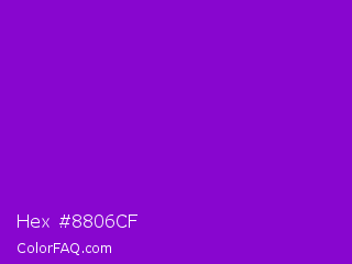 Hex #8806cf Color is a normal purple color and the nearest color is French Violet #8806ce. Hex code #8806cf and RGB value is rgb(136,6,207). In RGB color space, this color is composed of 53% red, 2% green, 81% blue, In CMYK color space, this color is composed of 34% cyan, 97% magenta, 0% yellow , 19% black , In HSL color space, this color has a hue angle of 279° , 94% saturation and 42% lightness.
