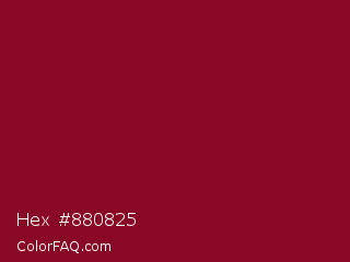 Hex #880825 Color is a dark red color and the nearest color is Monarch #8b0723. Hex code #880825 and RGB value is rgb(136,8,37). In RGB color space, this color is composed of 53% red, 3% green, 15% blue, In CMYK color space, this color is composed of 0% cyan, 94% magenta, 73% yellow , 47% black , In HSL color space, this color has a hue angle of 346° , 89% saturation and 28% lightness.