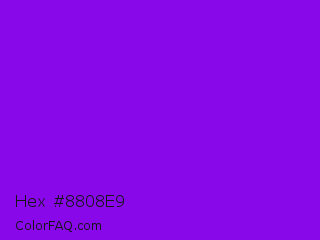 Hex #8808e9 Color is a normal purple color and the nearest color is Electric Violet #8b00ff. Hex code #8808e9 and RGB value is rgb(136,8,233). In RGB color space, this color is composed of 53% red, 3% green, 91% blue, In CMYK color space, this color is composed of 42% cyan, 97% magenta, 0% yellow , 9% black , In HSL color space, this color has a hue angle of 274° , 93% saturation and 47% lightness.