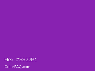Hex #8822b1 Color is a normal purple color and the nearest color is Grape #6f2da8. Hex code #8822b1 and RGB value is rgb(136,34,177). In RGB color space, this color is composed of 53% red, 13% green, 69% blue, In CMYK color space, this color is composed of 23% cyan, 81% magenta, 0% yellow , 31% black , In HSL color space, this color has a hue angle of 283° , 68% saturation and 41% lightness.