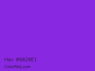 Hex #8828e1 Color is a normal purple color and the nearest color is Blue Violet #8a2be2. Hex code #8828e1 and RGB value is rgb(136,40,225). In RGB color space, this color is composed of 53% red, 16% green, 88% blue, In CMYK color space, this color is composed of 40% cyan, 82% magenta, 0% yellow , 12% black , In HSL color space, this color has a hue angle of 271° , 76% saturation and 52% lightness.