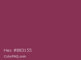 Hex #883155 Color is a normal rose color and the nearest color is Camelot #893456. Hex code #883155 and RGB value is rgb(136,49,85). In RGB color space, this color is composed of 53% red, 19% green, 33% blue, In CMYK color space, this color is composed of 0% cyan, 64% magenta, 38% yellow , 47% black , In HSL color space, this color has a hue angle of 335° , 47% saturation and 36% lightness.