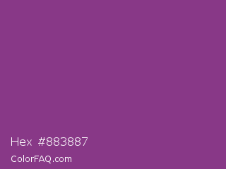 Hex #883887 Color is a normal magenta color and the nearest color is Vivid Violet #803790. Hex code #883887 and RGB value is rgb(136,56,135). In RGB color space, this color is composed of 53% red, 22% green, 53% blue, In CMYK color space, this color is composed of 0% cyan, 59% magenta, 1% yellow , 47% black , In HSL color space, this color has a hue angle of 301° , 42% saturation and 38% lightness.