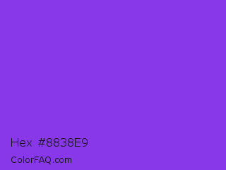 Hex #8838e9 Color is a normal violet color and the nearest color is Blue Violet #8a2be2. Hex code #8838e9 and RGB value is rgb(136,56,233). In RGB color space, this color is composed of 53% red, 22% green, 91% blue, In CMYK color space, this color is composed of 42% cyan, 76% magenta, 0% yellow , 9% black , In HSL color space, this color has a hue angle of 267° , 80% saturation and 57% lightness.