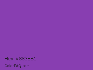 Hex #883eb1 Color is a normal purple color and the nearest color is Purpureus #9a4eae. Hex code #883eb1 and RGB value is rgb(136,62,177). In RGB color space, this color is composed of 53% red, 24% green, 69% blue, In CMYK color space, this color is composed of 23% cyan, 65% magenta, 0% yellow , 31% black , In HSL color space, this color has a hue angle of 279° , 48% saturation and 47% lightness.