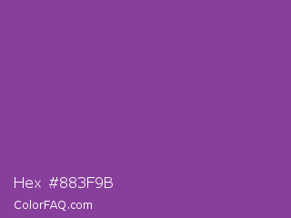 Hex #883f9b Color is a normal purple color and the nearest color is Vivid Violet #803790. Hex code #883f9b and RGB value is rgb(136,63,155). In RGB color space, this color is composed of 53% red, 25% green, 61% blue, In CMYK color space, this color is composed of 12% cyan, 59% magenta, 0% yellow , 39% black , In HSL color space, this color has a hue angle of 288° , 42% saturation and 43% lightness.
