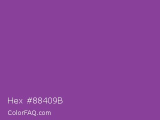 Hex #88409b Color is a normal purple color and the nearest color is Vivid Violet #803790. Hex code #88409b and RGB value is rgb(136,64,155). In RGB color space, this color is composed of 53% red, 25% green, 61% blue, In CMYK color space, this color is composed of 12% cyan, 59% magenta, 0% yellow , 39% black , In HSL color space, this color has a hue angle of 287° , 42% saturation and 43% lightness.