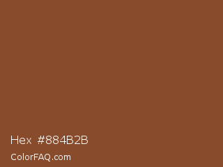 Hex #884b2b Color is a normal orange color and the nearest color is Mule Fawn #8c472f. Hex code #884b2b and RGB value is rgb(136,75,43). In RGB color space, this color is composed of 53% red, 29% green, 17% blue, In CMYK color space, this color is composed of 0% cyan, 45% magenta, 68% yellow , 47% black , In HSL color space, this color has a hue angle of 21° , 52% saturation and 35% lightness.
