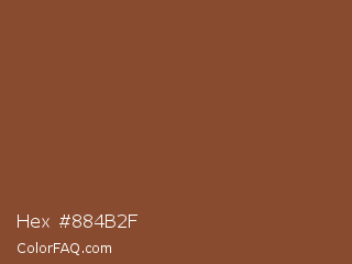 Hex #884b2f Color is a normal orange color and the nearest color is Mule Fawn #8c472f. Hex code #884b2f and RGB value is rgb(136,75,47). In RGB color space, this color is composed of 53% red, 29% green, 18% blue, In CMYK color space, this color is composed of 0% cyan, 45% magenta, 65% yellow , 47% black , In HSL color space, this color has a hue angle of 19° , 49% saturation and 36% lightness.