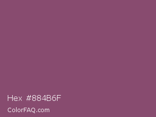 Hex #884b6f Color is a normal magenta color and the nearest color is Twilight Lavender #8a496b. Hex code #884b6f and RGB value is rgb(136,75,111). In RGB color space, this color is composed of 53% red, 29% green, 44% blue, In CMYK color space, this color is composed of 0% cyan, 45% magenta, 18% yellow , 47% black , In HSL color space, this color has a hue angle of 325° , 29% saturation and 41% lightness.