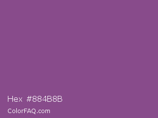 Hex #884b8b Color is a normal magenta color and the nearest color is Razzmic Berry #8d4e85. Hex code #884b8b and RGB value is rgb(136,75,139). In RGB color space, this color is composed of 53% red, 29% green, 55% blue, In CMYK color space, this color is composed of 2% cyan, 46% magenta, 0% yellow , 45% black , In HSL color space, this color has a hue angle of 297° , 30% saturation and 42% lightness.