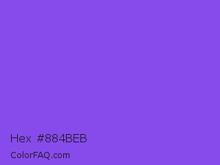 Hex #884beb Color is a light violet color and the nearest color is Navy Purple #9457eb. Hex code #884beb and RGB value is rgb(136,75,235). In RGB color space, this color is composed of 53% red, 29% green, 92% blue, In CMYK color space, this color is composed of 42% cyan, 68% magenta, 0% yellow , 8% black , In HSL color space, this color has a hue angle of 263° , 80% saturation and 61% lightness.