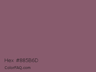 Hex #885b6d Color is a normal rose color and the nearest color is Mauve Taupe #915f6d. Hex code #885b6d and RGB value is rgb(136,91,109). In RGB color space, this color is composed of 53% red, 36% green, 43% blue, In CMYK color space, this color is composed of 0% cyan, 33% magenta, 20% yellow , 47% black , In HSL color space, this color has a hue angle of 336° , 20% saturation and 45% lightness.