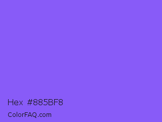 Hex #885bf8 Color is a light indigo color and the nearest color is Navy Purple #9457eb. Hex code #885bf8 and RGB value is rgb(136,91,248). In RGB color space, this color is composed of 53% red, 36% green, 97% blue, In CMYK color space, this color is composed of 45% cyan, 63% magenta, 0% yellow , 3% black , In HSL color space, this color has a hue angle of 257° , 92% saturation and 66% lightness.