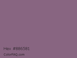 Hex #886581 Color is a normal magenta color and the nearest color is Chinese Violet #856088. Hex code #886581 and RGB value is rgb(136,101,129). In RGB color space, this color is composed of 53% red, 40% green, 51% blue, In CMYK color space, this color is composed of 0% cyan, 26% magenta, 5% yellow , 47% black , In HSL color space, this color has a hue angle of 312° , 15% saturation and 46% lightness.