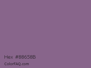 Hex #88658b Color is a normal magenta color and the nearest color is French Lilac #86608e. Hex code #88658b and RGB value is rgb(136,101,139). In RGB color space, this color is composed of 53% red, 40% green, 55% blue, In CMYK color space, this color is composed of 2% cyan, 27% magenta, 0% yellow , 45% black , In HSL color space, this color has a hue angle of 295° , 16% saturation and 47% lightness.