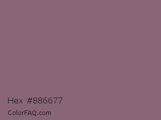 Hex #886677 Color is a normal rose color and the nearest color is Spicy Pink #816e71. Hex code #886677 and RGB value is rgb(136,102,119). In RGB color space, this color is composed of 53% red, 40% green, 47% blue, In CMYK color space, this color is composed of 0% cyan, 25% magenta, 13% yellow , 47% black , In HSL color space, this color has a hue angle of 330° , 14% saturation and 47% lightness.