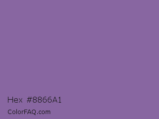 Hex #8866a1 Color is a normal purple color and the nearest color is Trendy Pink #8c6495. Hex code #8866a1 and RGB value is rgb(136,102,161). In RGB color space, this color is composed of 53% red, 40% green, 63% blue, In CMYK color space, this color is composed of 16% cyan, 37% magenta, 0% yellow , 37% black , In HSL color space, this color has a hue angle of 275° , 24% saturation and 52% lightness.