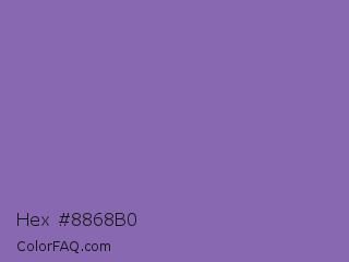 Hex #8868b0 Color is a normal violet color and the nearest color is Middle Blue Purple #8b72be. Hex code #8868b0 and RGB value is rgb(136,104,176). In RGB color space, this color is composed of 53% red, 41% green, 69% blue, In CMYK color space, this color is composed of 23% cyan, 41% magenta, 0% yellow , 31% black , In HSL color space, this color has a hue angle of 267° , 31% saturation and 55% lightness.