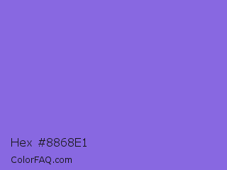 Hex #8868e1 Color is a light indigo color and the nearest color is Medium Purple #9370db. Hex code #8868e1 and RGB value is rgb(136,104,225). In RGB color space, this color is composed of 53% red, 41% green, 88% blue, In CMYK color space, this color is composed of 40% cyan, 54% magenta, 0% yellow , 12% black , In HSL color space, this color has a hue angle of 256° , 67% saturation and 65% lightness.
